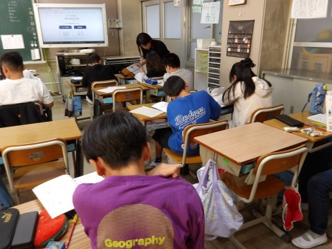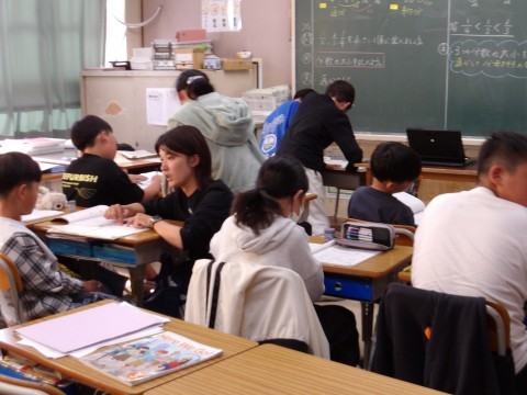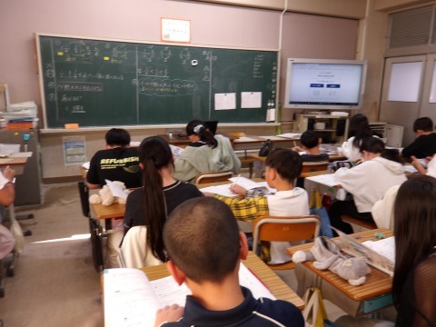 分数の大きさを不等号・等号を使って表す学習をしています。