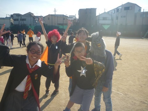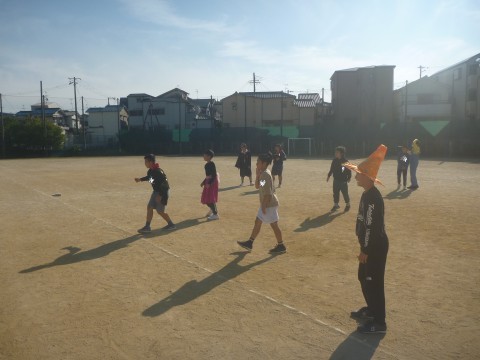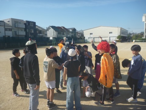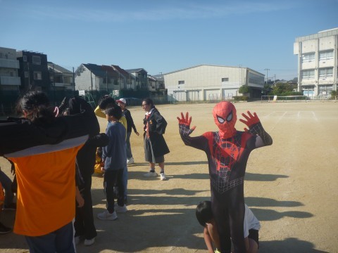 ハロウィンの仮装をして外遊びを楽しんでいました。