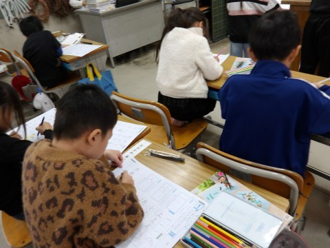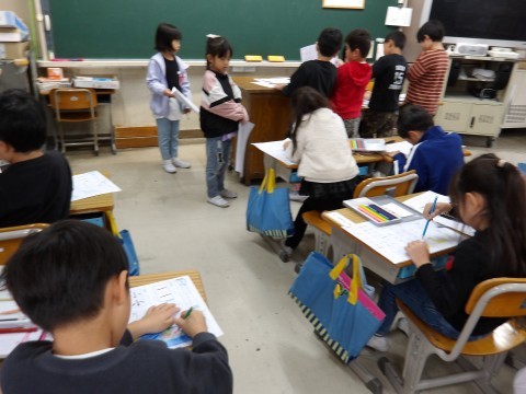 国語「じどうしゃくらべ」の学習を行ったり,硬筆で丁寧に字を書く練習を行ったりしています。