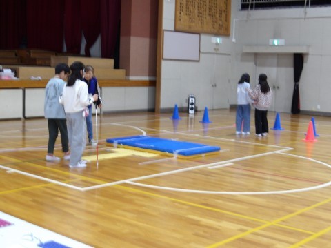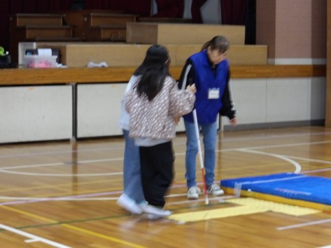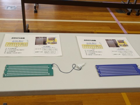「車椅子体験」「アイマスク体験」の他,点字作成や自動販売機や蛇口等の「ユニバーサルデザイン」について説明を受けました。