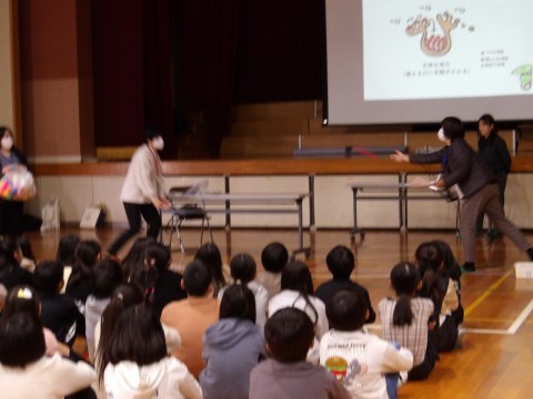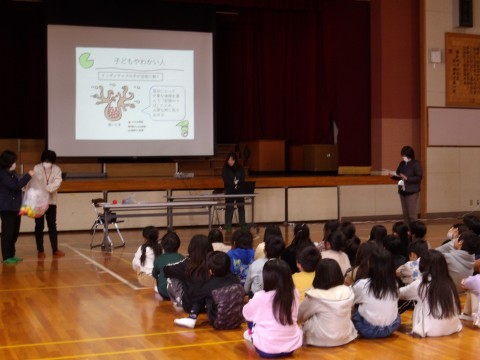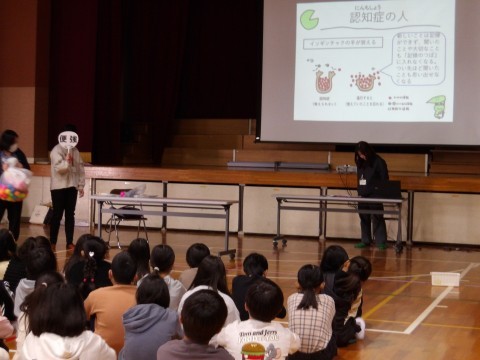中第1・第2地域包括の方々に来ていただき,「認知症になるとどんなふうになるの?」「記憶の仕組みって?」について話をしていただき,劇をしながら実際にどのように認知症の方に関っていくか考えました。