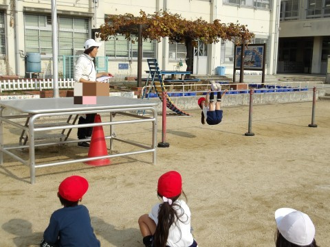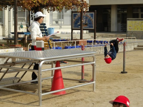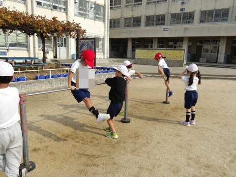 腕を使ってしっかり体幹を保ちながら,逆上がりや前回り等の技にチャレンジしていきましょう。
