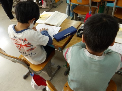 「おんがえし」ができたたぬきの気持ち,受けた側のおかみさんの気持ちを考え話し合いました。