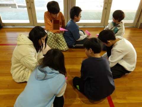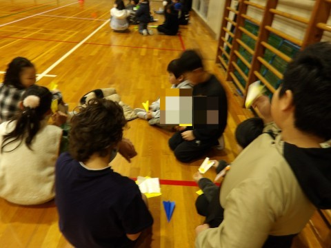 相談し合いながら「遠くに飛ぶ飛行機つくり」をしました。