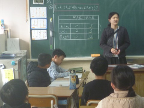 5年生:算数「じゃんけんが強いのはどちら?(確率の学習)」「テスト前授業」