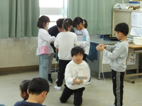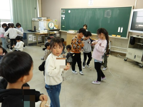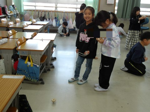 2組でもこま回しの練習が始まっています。上手く回せるようになるまで練習しましょう。