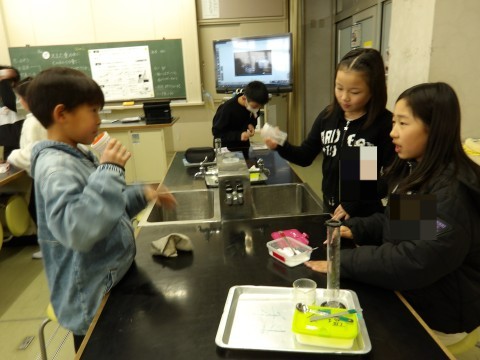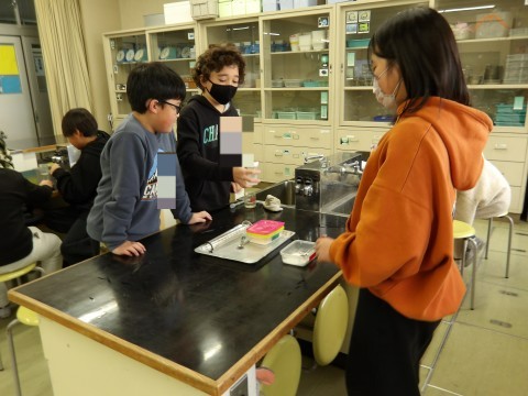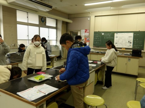 理科「きまった量の水にものがとける量に限りがあるのか」という課題をもって実験を行いました。