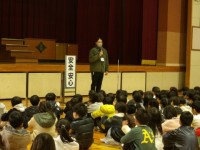 良い天気のなか、運動場で全校朝礼をおこないました。