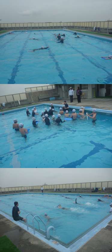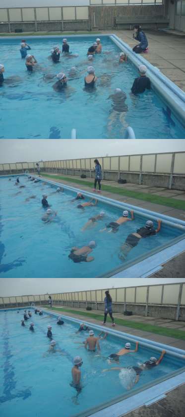 少し肌寒いなかでしたが、プール水泳をおこないました。