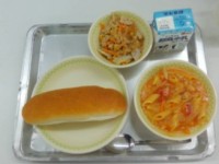 和食の基本であるみそ汁は、給食でもよく登場します。中の具材はいろいろ変わりますが、今日はたくさんの野菜を使った「野菜たっぷりみそ汁」です。