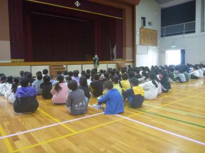 校長先生からの「手洗い・うがい、すいみん」の話の後、児童会から黙掃週間の話がありました。