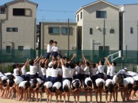 組体操「クイックピラミッド」間合いを確認しながら練習を体育館で行いました。
