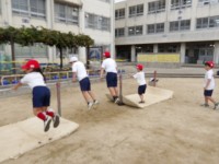 体育で鉄棒を使っていろいろな技にチャレンジする学習を始めました。今日は「自分に合...