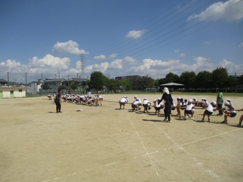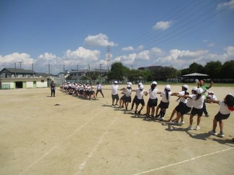 今月の15日の連合運動会にむけて,6年生が綱引きの練習をしていました。