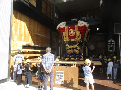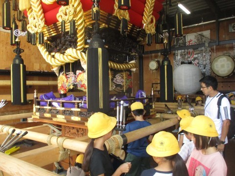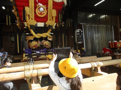 月見祭が終わったあとの,ふとん太鼓の見学に3年生が行ってきました。