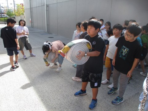 本日,4年生が校外学習に行ってきました。午前中は防災センターでの体験学習でした。