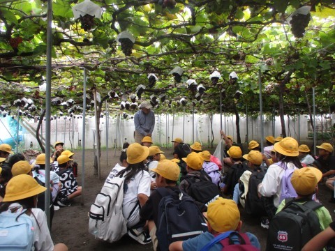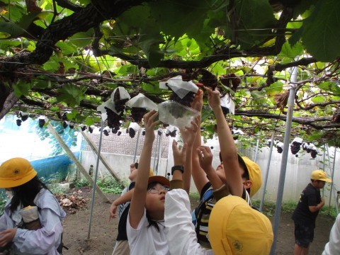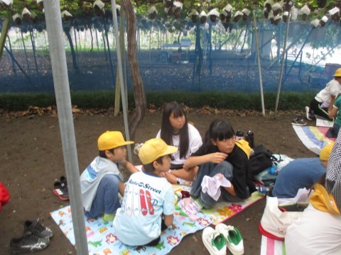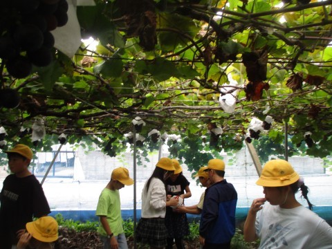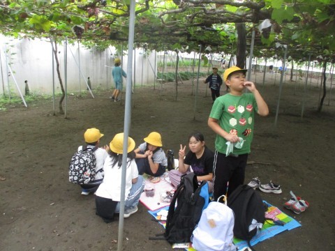 午後からはぶどう狩りを行いました。「甘い!」「おいしい!」という声があちらこちらで