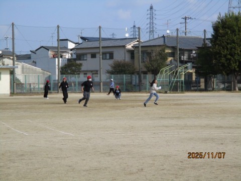 ケイドロでは、暑くも寒くもないちょうどいい気温、快晴の中運動場を走り回っていました。