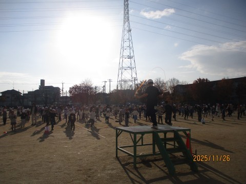 本日より朝の時間に全児童で縄跳び集会を行います。