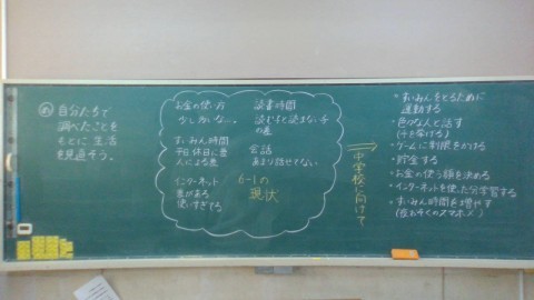 今日はその発表を行い、6年1組の現状から中学校に向けて生活をどうしていかなければならないか考えました。