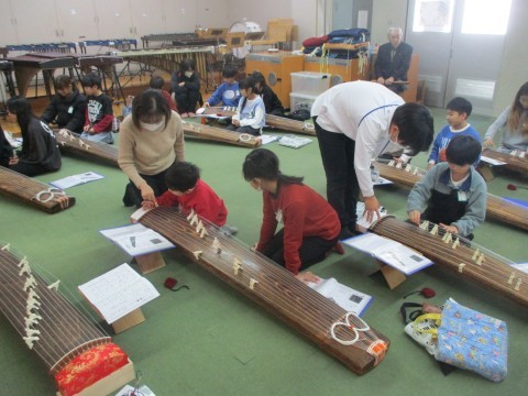講師の先生がたくさんお琴を用意してくださり,子どもたちも