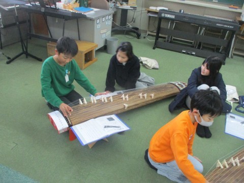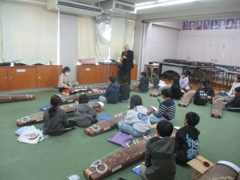 本日,4年生が音楽の授業の一環で,お琴の出前授業をうけました。