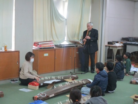 最後に,お琴の先生と音楽の先生がお琴で,学校の施設管理業務の清水さんが