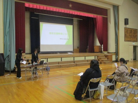 学校全般の説明や,特別支援の取組の紹介,PTAさんからの話がありました。