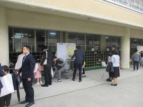 クラスが掲示されていて,あたらしい名札をもらいました。