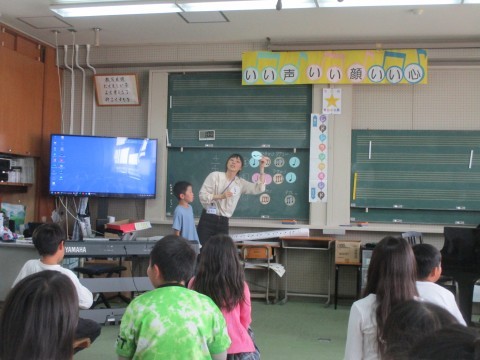 4年生の様子 公開日 2026/04/15 更新日 2026/04/15 4年 4年生が音楽の授業をしていました。示されたリズムを手拍子で行っていました。とても楽しそうな笑顔で活動していました。 4年生
