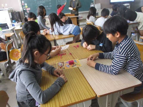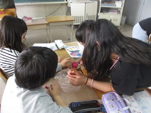 今日は1㎤の積み木をつかって,かさを調べていました。