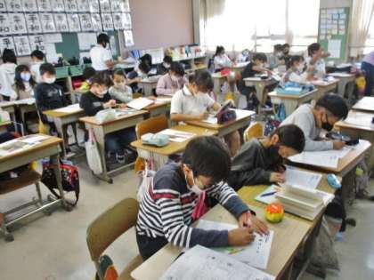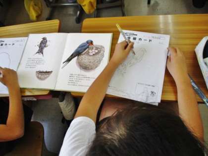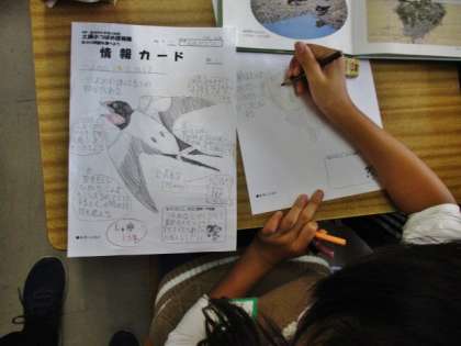 つばめ探検隊では、調べたことを情報カードに書き込んでいきます。