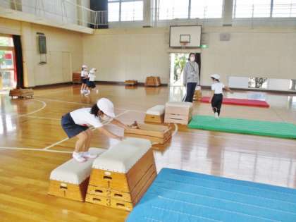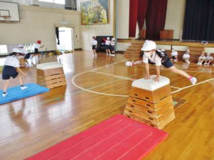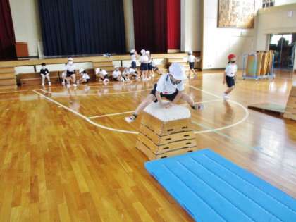 跳び箱に挑戦しています。