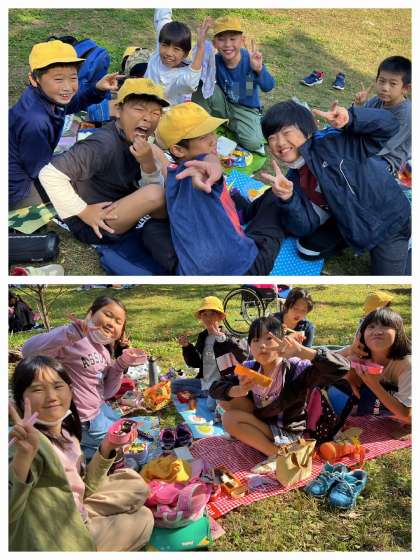今日は3・4年合同での校外学習で,大仙公園を訪れました。公園に到着すると,3年はまず緑化センターを,4年は堺市博物館をそれぞれ見学しました。お昼になると公園内の広場で合流し,待ちに待ったお弁当。あたたかな秋の陽気のもと,楽しい時間を過ごせたようです。