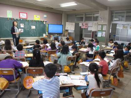 1組は道徳の授業で、「自分の仕事をしっかりと」という単元の「お風呂掃除」という教材を学習していました。家族の人たちが喜んでくれて、それが励みとなってもっと頑張るよという気持ちになっていく主人公の心の動きを考えていました。