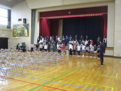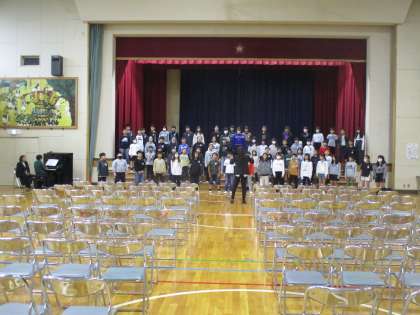 5年生は体育館で、参観目に保護者の人たちに発表する合唱の練習に取り組んでいました。