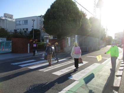 今日も何人かの保護者の方が集団登校班に付き添ってくださいました。不審者対策で本当に助かります。ありがとうございました。