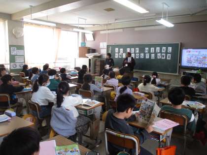 1組は外国語の授業で、英語の先生とNSの先生によるTT授業でした。