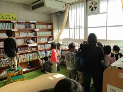 どんな本を借りようかわくわくしている子、イスに座ってじっくりと本を読んでいる子など、様々な姿が見られました。