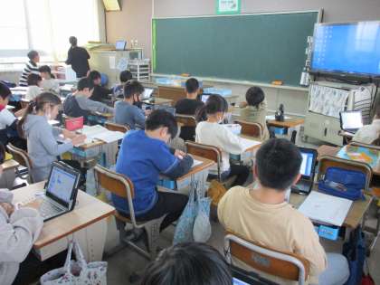 伝統工芸のよさについて調べたことを、リーフレットにまとめていました。完成した子は、タブレットでプログラミングの練習をしていました。