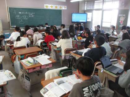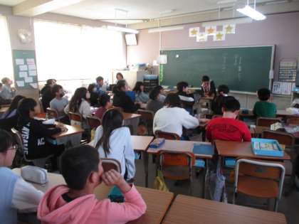 2組はすでにまとめた内容をちょうど発表しているところでした。前で堂々と発表をし、それを聞いていた子どもたちは発表が終わると拍手を送っていました。どの発表もよく調べられていて素晴らしい発表でした。