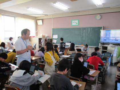 リーフレットと慣用句のプリントに取り組んでいました。早くやり終えた子は、タイピングや都道府県の問題に取り組んでいました。