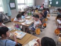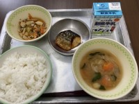 教室の給食カレンダーに「堺のめぐみ」マークがある日は、堺市でとれた野菜が使われています。今日は堺市産の小松菜をおひたしにしました。