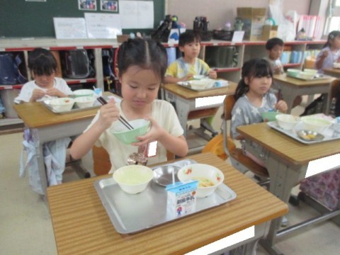 給食の時間が始まりました。今日もおいしくいただきましょう♪