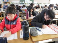 水泳の授業をしています。泳力別に分かれて、泳ぐ練習をしています。