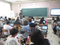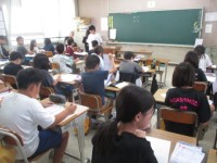 「合同な図形」のテストをしています。分度器やコンパスを使って、問題に答えています。
