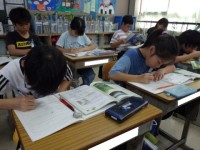 「合同な図形」の書き方の学習をしています。みんなの前でうまく書けましたね。