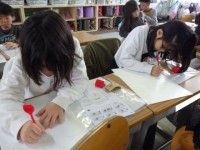 新しい地図記号をみんなで考えています。コンビニエンスストア、カラオケ、万博、…たくさんのアイデアがあふれていました♪