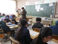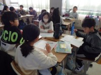 国語の授業をしています。ヘボン式のローマ字を書いています。