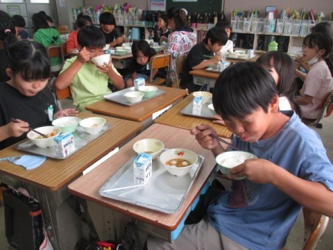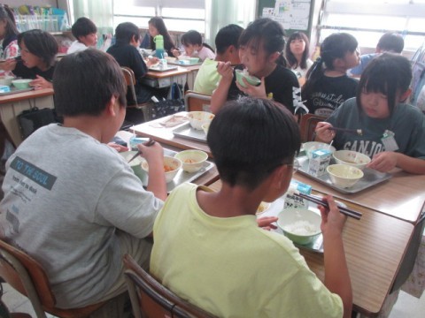 給食の時間が始まりました。今日もおいしくいただきましょう♪
